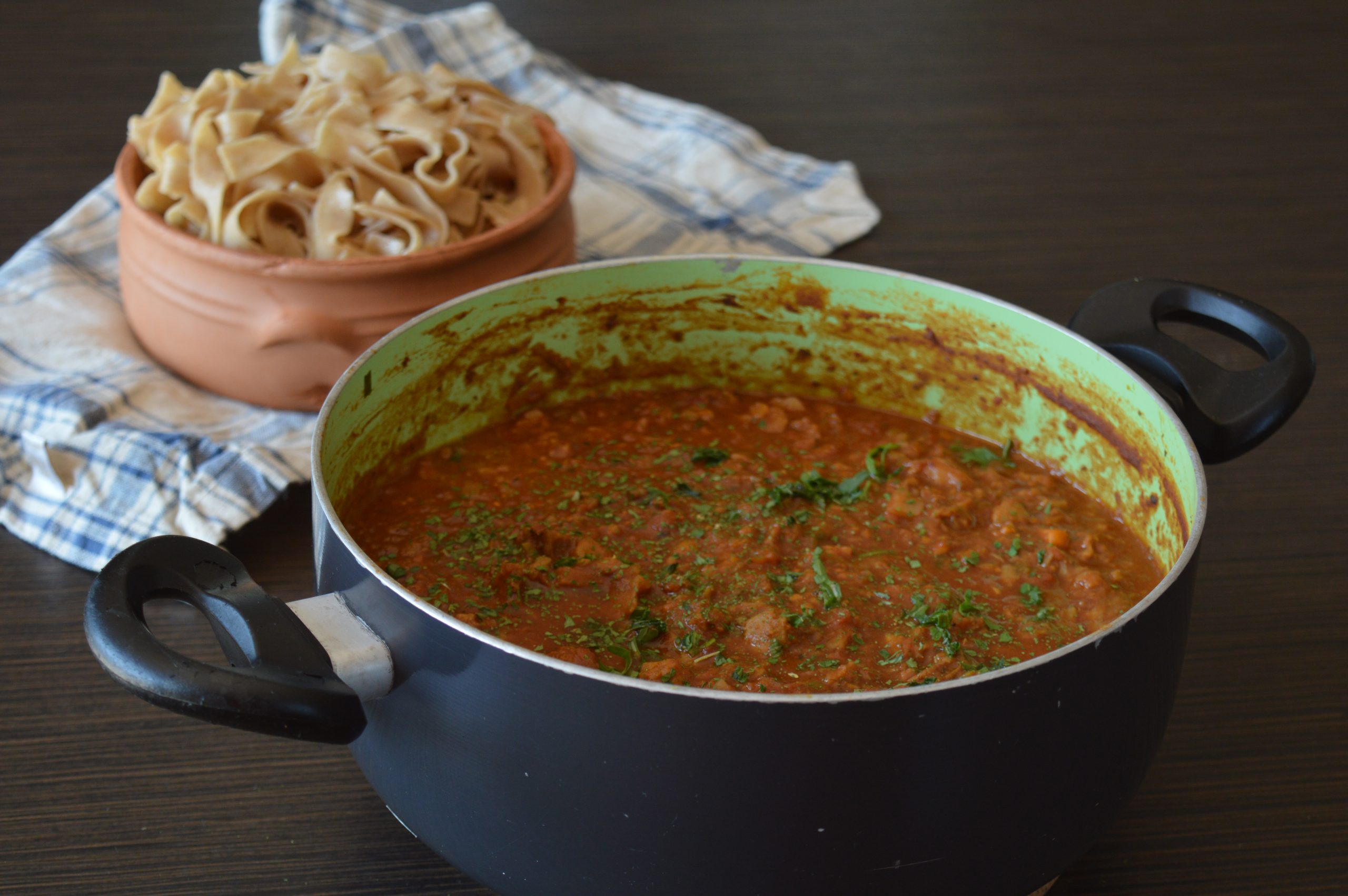 - Dodati začine, pelat, sok od paradajza i 200ml vode.